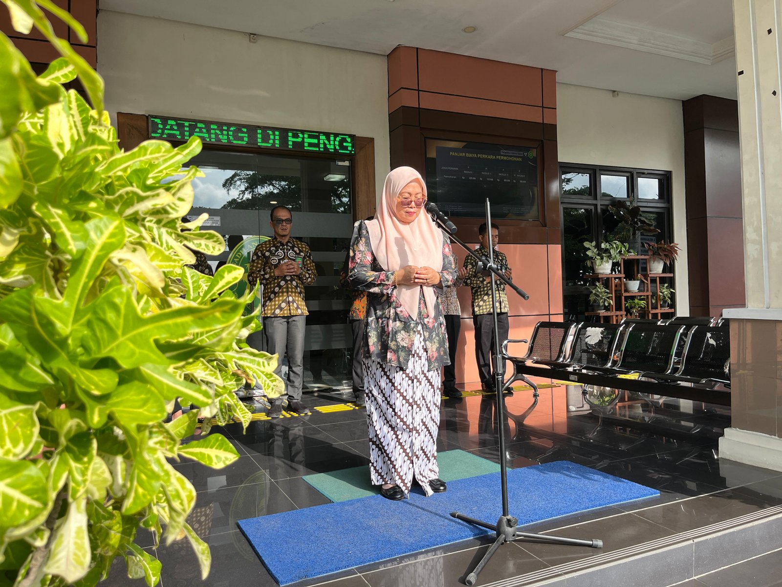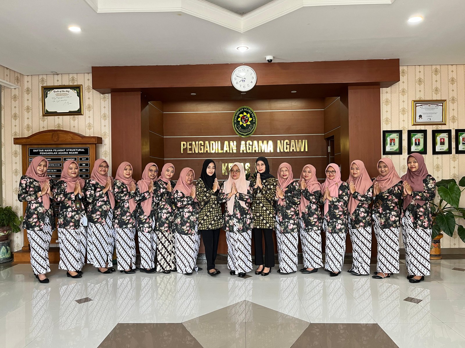 Pagi ini menjadi pagi yang berbeda khususnya bagi seluruh aparatur di Pengadilan Agama Ngawi kelas IA. Bahwasanya hari ini Senin (21/4) seperti biasa dilaksanakan apel pagi namun istimewanya hari ini yang menjadi petugas apel seluruhnya yakni aparatur perempuan Pengadilan Agama Ngawi kelas IA. Bertindak sebagai pembina apel adalah Wakil Ketua Pengadilan Agama Ngawi, Ibu Farida Nur Aini dan yang bertindak sebagai komandan apel Dwi Ambar Alfiyah. Semua petugas apel perempuan, hal ini bersamaan ditandai dengan memperingati Hari Kartini sebagai tokoh yang memperjuangkan hak-hak wanita. Untuk memperingati hari kartini, seluruh aparatur kompak mengenakan busana tradisional kebaya dan lurik lengkap dengan blangkon. Pelaksanaan apel dilaksanakan di halaman kantor dimulai pukul 08.00 WIB sampai dengan selesai. Apel pagi ini berlangsung khidmat dan lancar diikuti oleh seluruh aparatur Pengadilan Agama Ngawi kelas IA.