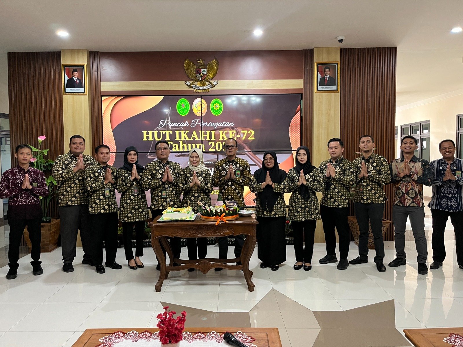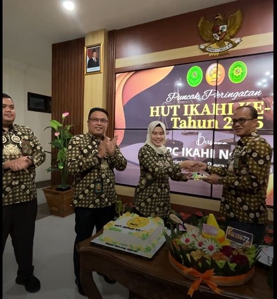 Rabu (22/4) Ikatan Hakim Indonesia (IKAHI) merayakan Hari Ulang Tahun (HUT) ke-72 tahun. Acara yang dihadiri oleh Pengurus Daerah dan Pengurus Cabang IKAHI di seluruh Indonesia dilaksanakan secara Hybrid bersama YM Ketua Mahkamah Agung dan Para Pimpinan Mahkamah Agung serta Pengurus Pusat IKAHI. Acara puncak ulang tahun IKAHI secara luring dilaksanakan di Balairung Mahkamah Agung. Ikatan Hakim Indonesia (IKAHI) Cabang Ngawi mengikuti secara virtual melalui via zoom meeting di Ruang Multimedia Center Pengadilan Agama Ngawi. Acara mulai dilaksanakan pada pukul 08.30 WIB. Peringatan puncak HUT IKAHI berlangsung khidmat dan penuh kebersamaan ini dihadiri oleh Ketua, Wakil, dan Hakim Pengadilan Agama Ngawi, serta Ketua, Wakil, dan Hakim Pengadilan Negeri Ngawi. Tentunya acara semakin semarak, antusias, dan kompak dengan seragam batik IKAHI.