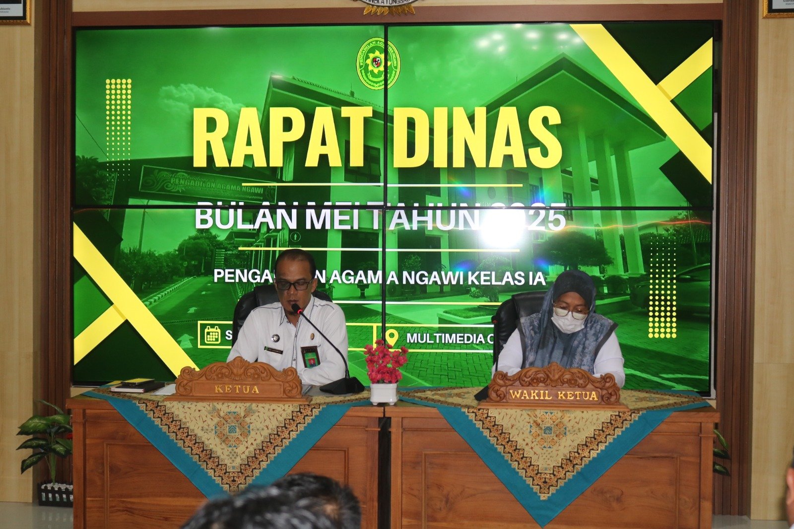 Dalam rangka evaluasi dan peningkatan kinerja, Pengadilan Agama Ngawi Kelas IA menggelar Rapat Dinas Bulan Mei 2025 pada Senin (05/05). Rapat berlangsung di Ruang Multimedia Center dan dipimpin langsung oleh Ketua Pengadilan Agama Ngawi, Mohammad Anton Dwi Putra, S.H., M.H., didampingi oleh Wakil Ketua Farida Nur Aini, S.H., M.H.