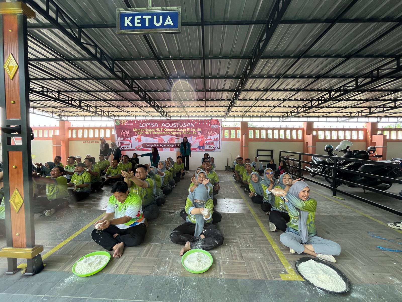 Ngawi, 22 Agustus 2025 – Ngawi – Dalam rangka memperingati Hari Ulang Tahun ke-80 Kemerdekaan Republik Indonesia, Pengadilan Agama (PA) Ngawi menyelenggarakan berbagai perlombaan dan kegiatan kebersamaan yang berlangsung meriah. Acara digelar pada Jumat, 22 Agustus 2025, di halaman belakang kantor PA Ngawi dengan melibatkan seluruh aparatur, peserta praktik kerja lapangan (PKL), serta mahasiswa magang. Kehadiran semua unsur tersebut menambah semarak suasana dan memperkuat rasa persaudaraan di lingkungan peradilan.