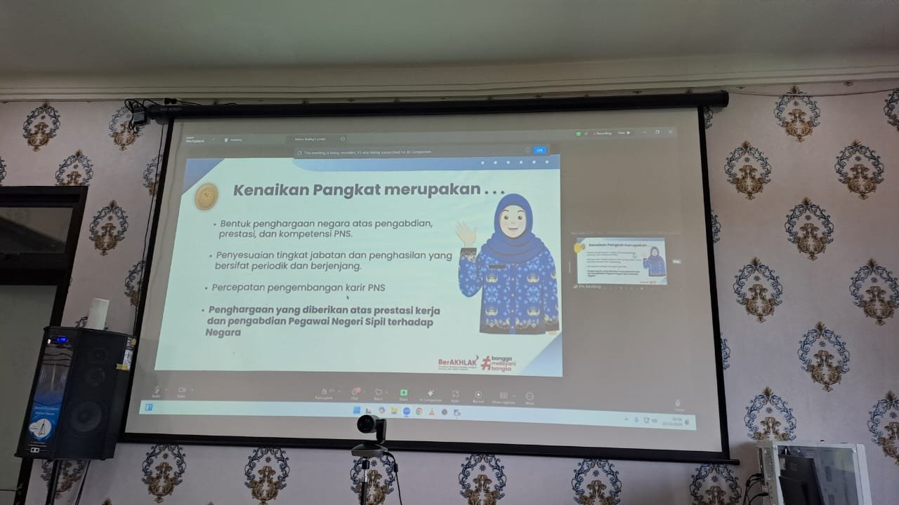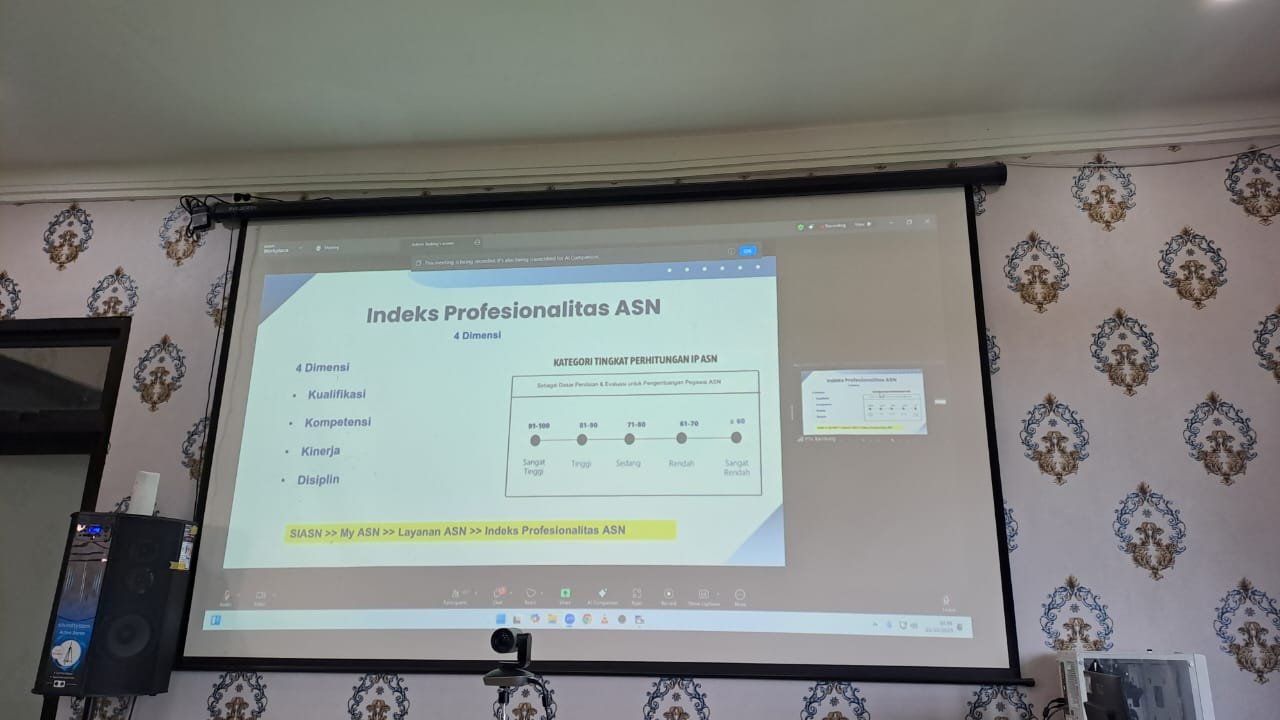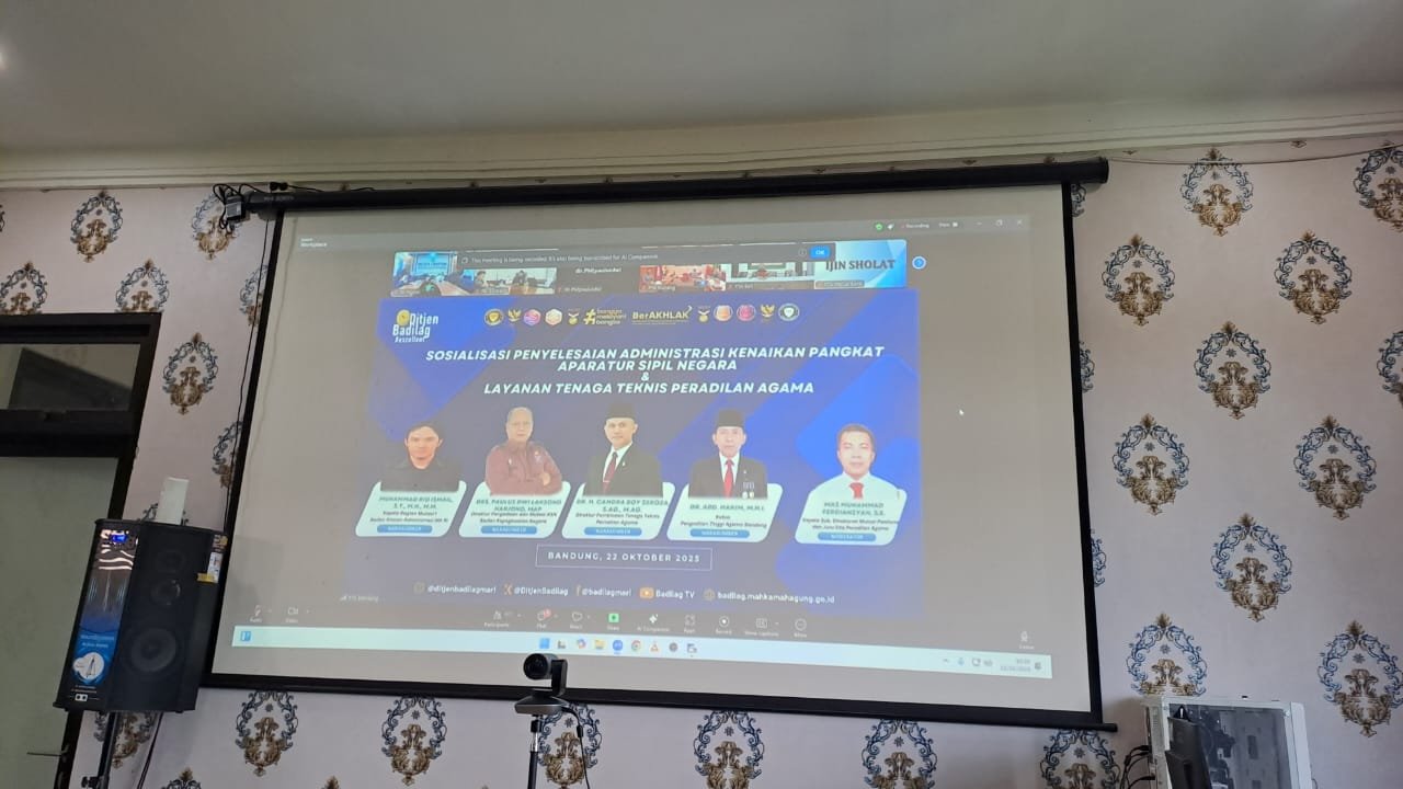 Ngawi, 22 Oktober 2025 – Pengadilan Agama (PA) Ngawi mengikuti kegiatan sosialisasi Penyelesaian Administrasi Kenaikan Pangkat Tenaga Teknis Peradilan Agama yang diselenggarakan oleh Badan Kepegawaian Negara (BKN) melalui platform Zoom Meeting pada Rabu, 22 Oktober 2025. Kegiatan sosialiasi dilaksanakan pada pukul 10.00 WIB di ruang media center PA Ngawi. Kegiatan ini dilaksanakan berdasarkan undangan dari Direktorat Jenderal Badan Peradilan Agama nomor 2767/DJA.2/KP2.1.1/X/2025 tentang undangan Sosialisasi Penyelesaian Administrasi Kenaikan Pangkat Aparatur Sipil Negara Dan Layanan Tenaga Teknis Peradilan Agama. Kegiatan ini diikuti oleh Pimpinan dan Pengelola Kepegawaian Pengadilan Tinggi Agama/Mahkamah Syar’iyah Aceh dan Pengadilan Agama/Mahkamah Syar’iyah seluruh Indonesia.
