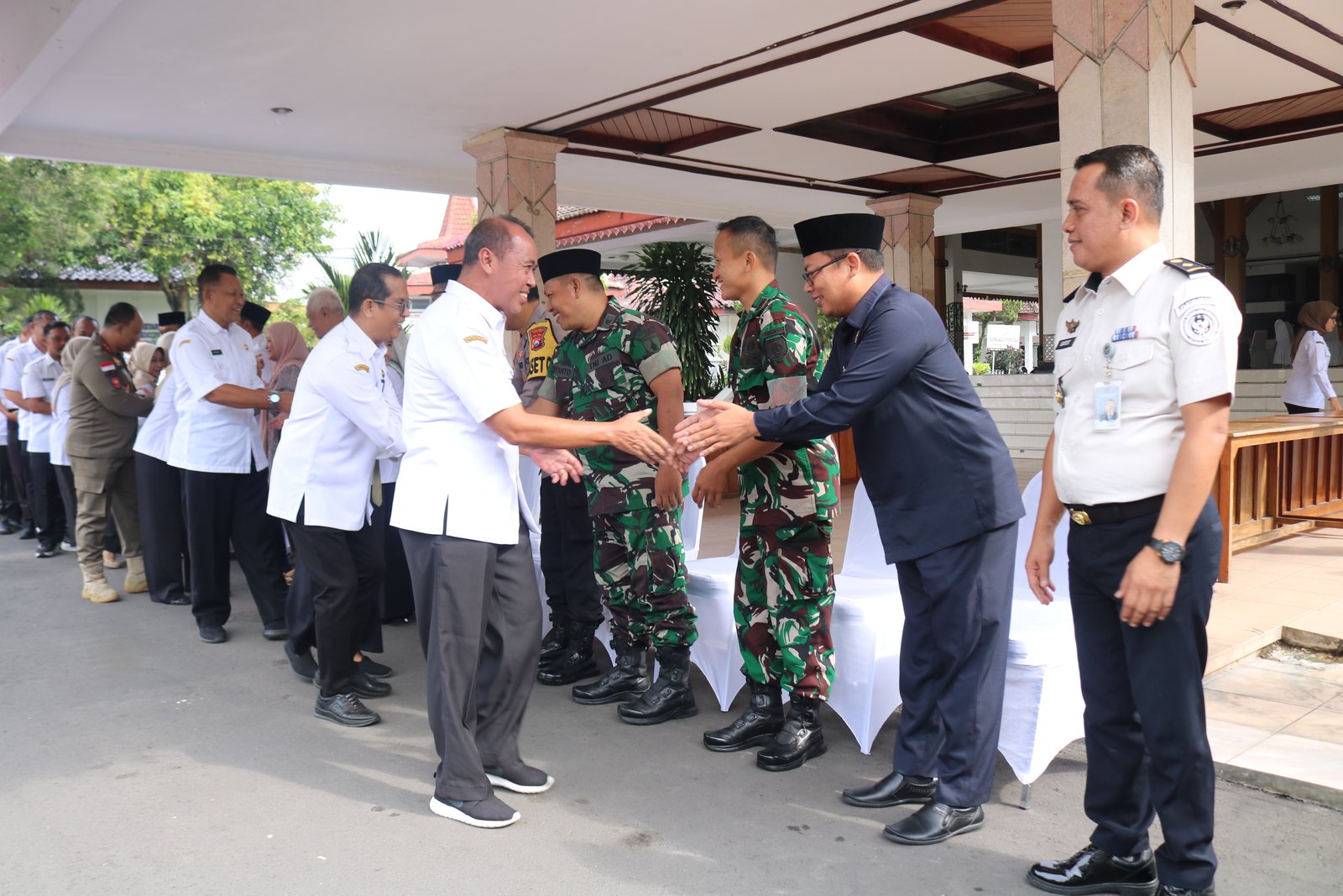 Ngawi, 25 Maret 2026 - Suasana khidmat dan penuh kekeluargaan menyelimuti Pendopo Wedya Graha pada Rabu (25/3/2026). Pemerintah Kabupaten Ngawi menggelar acara Halal Bihalal Aparatur Sipil Negara (ASN) se-Kabupaten Ngawi Tahun 1447 Hijriah sebagai momentum memperkuat sinergi usai perayaan Idulfitri. Kegiatan yang mengusung tema “Mempererat Silaturahmi, Meningkatkan Integritas dan Pelayanan untuk Ngawi Lebih Maju” ini menjadi ajang konsolidasi spiritual dan profesional bagi seluruh abdi negara di lingkungan Pemkab Ngawi.
