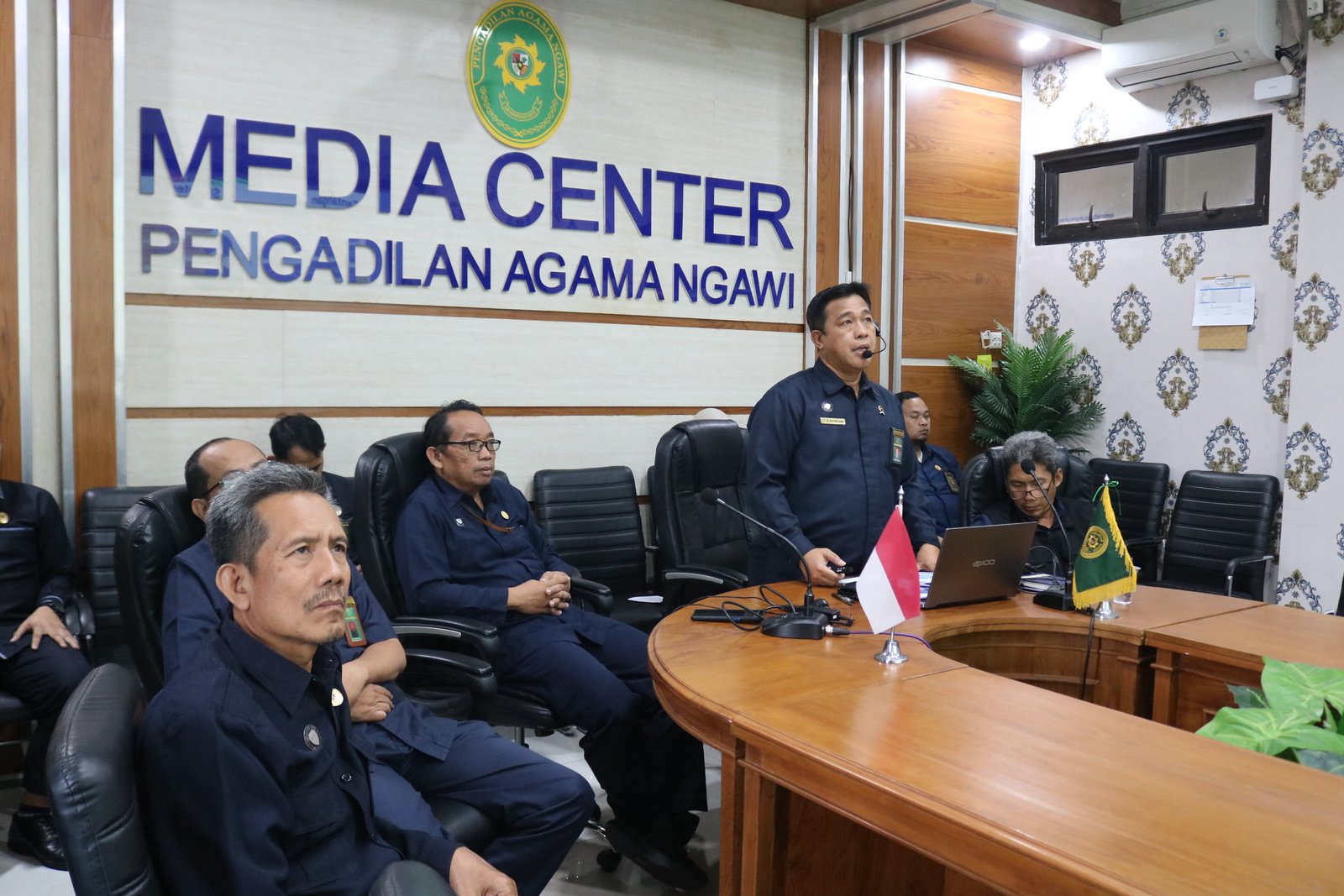 Ngawi, 1 April 2026 — Pengadilan Agama (PA) Ngawi mengikuti kegiatan Presentasi Pembangunan Zona Integritas (ZI) di wilayah Pengadilan Tinggi Agama (PTA) Surabaya pada Rabu (1/4/2026). Kegiatan ini dilaksanakan secara daring melalui Zoom Meeting dan berlangsung di ruang Media Center PA Ngawi. Presentasi tersebut diikuti oleh Ketua, Wakil Ketua, serta seluruh Tim Pembangunan Zona Integritas PA Ngawi. Kegiatan ini bertujuan untuk mengevaluasi sekaligus memperkuat komitmen satuan kerja dalam mewujudkan wilayah bebas dari korupsi dan birokrasi bersih melayani.