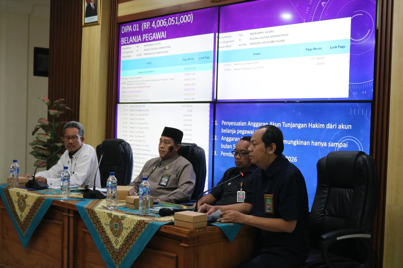 Ngawi, 14 Januari 2026 – Pengadilan Agama Ngawi menggelar Rapat Dinas yang dipimpin langsung oleh Ketua Pengadilan Agama Ngawi, A. Mahfudin, S.Ag., M.H., pada Rabu (14/01) bertempat di Ruang Multimedia Center Pengadilan Agama Ngawi. Kegiatan ini dihadiri oleh seluruh aparatur Pengadilan Agama Ngawi, baik unsur pimpinan, hakim, pejabat struktural dan fungsional, ASN, maupun PPNPN.