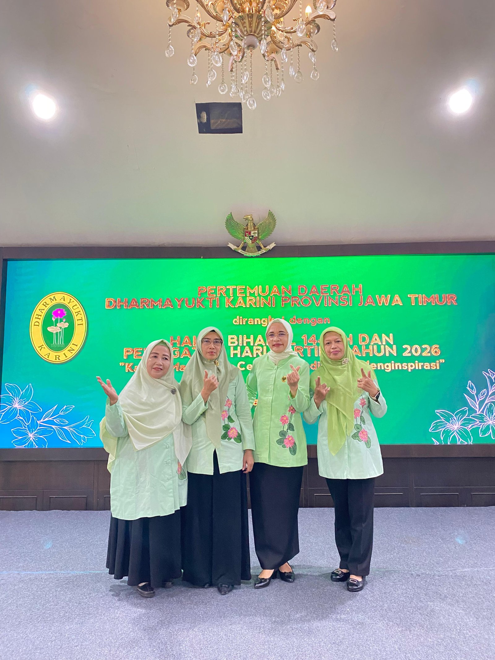 Lamongan, 10 April 2026 — Pertemuan Daerah Dharmayukti Karini Provinsi Jawa Timur digelar di Pendopo Lokatantra pada Jumat (10/4). Kegiatan ini menjadi ajang silaturahmi sekaligus penguatan peran perempuan dalam organisasi peradilan. Acara tersebut dihadiri oleh anggota Dharmayukti Karini dari berbagai daerah di Jawa Timur. Hadir dalam kegiatan ini Ibu Ketua Pengadilan Negeri Ngawi bersama Ibu Dharmayukti Karini Cabang Ngawi. Kehadiran keduanya menambah semarak acara serta menunjukkan dukungan terhadap aktivitas organisasi perempuan di lingkungan peradilan. Para tamu undangan tampak antusias mengikuti seluruh rangkaian kegiatan hingga selesai.