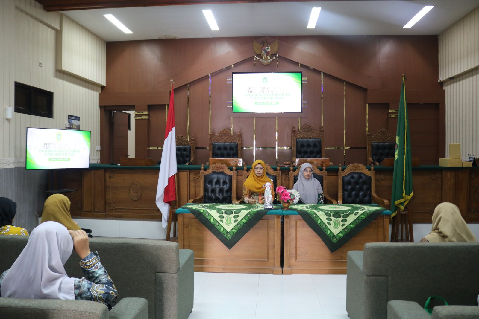 Pertemuan rutin Dharmayukti Karini Cabang Ngawi dilaksanakan pada Jumat, 17 April 2026, bertempat di Ruang Sidang Utama Pengadilan Agama Ngawi. Kegiatan ini menjadi momentum untuk mempererat silaturahmi serta memperkuat kebersamaan antaranggota Dharmayukti Karini di lingkungan peradilan Kabupaten Ngawi. Acara tersebut dihadiri oleh Istri Ketua Pengadilan Negeri Ngawi, Istri Wakil Ketua Pengadilan Agama Ngawi Lailatul Hidayati, para ibu hakim, serta seluruh anggota Dharmayukti Karini Cabang Ngawi.