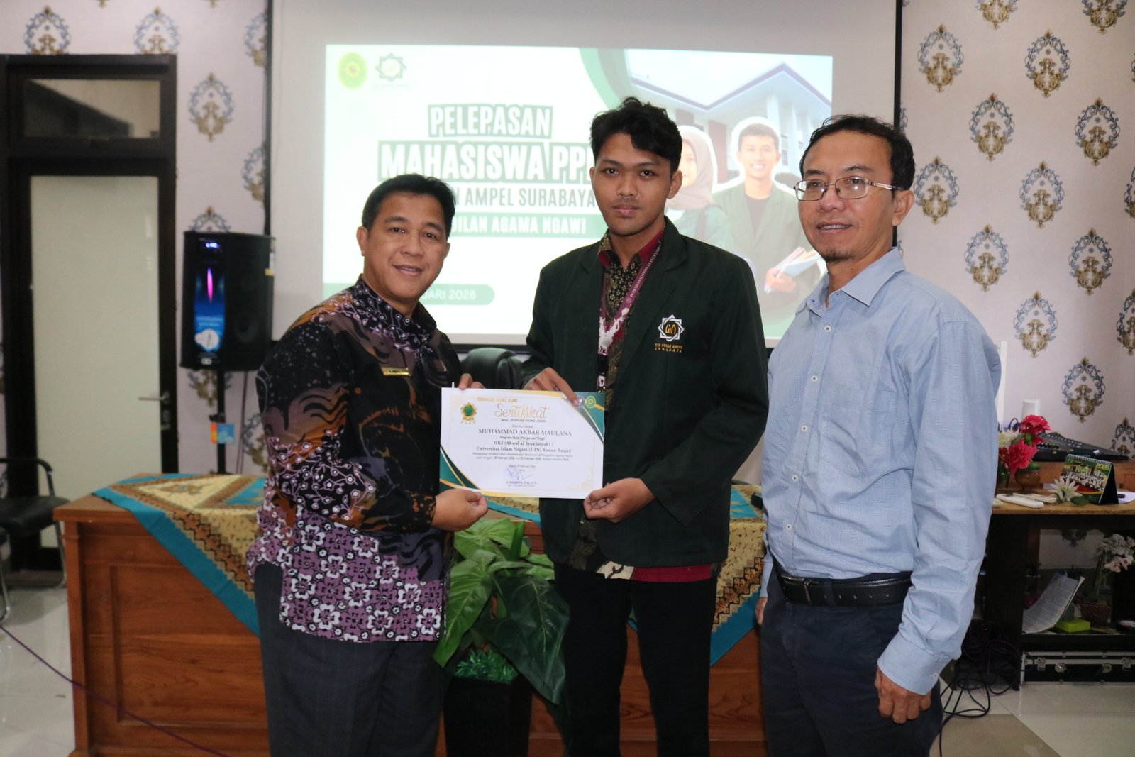 Kegiatan penutupan mahasiswa Praktik Kerja Lapangan (PKL) Universitas Islam Negeri (UIN) Sunan Ampel Surabaya resmi digelar pada Jumat, 20 Februari 2026, bertempat di Ruang Media Center Pengadilan Agama Ngawi. Acara tersebut menjadi penanda berakhirnya masa praktik para mahasiswa di lingkungan Pengadilan Agama Ngawi. Seluruh mahasiswa PKL UIN Sunan Ampel Surabaya hadir dalam kegiatan ini bersama para dosen pembimbing dan jajaran pimpinan Pengadilan Agama Ngawi. Suasana berlangsung khidmat dan penuh rasa kebersamaan.