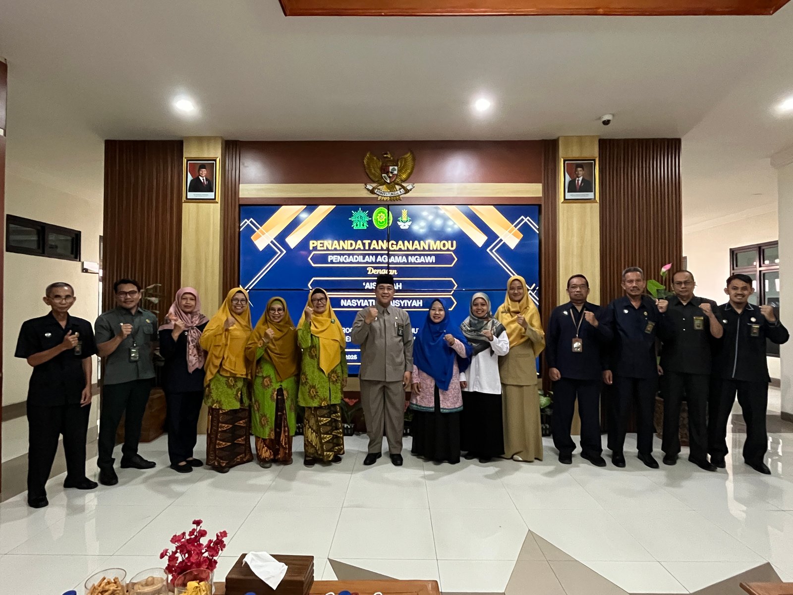Ngawi, 21 Oktober 2025 – Bertempat di ruang multimedia Pengadilan Agama Ngawi, telah dilaksanakan penandatanganan Nota Kesepahaman (MoU) antara Pengadilan Agama Ngawi dan Pimpinan Daerah Nasyiatul 'Aisyiyah Kabupaten Ngawi. Kegiatan ini juga menjadi langkah awal sinergi dalam penguatan kesadaran hukum keluarga, khususnya yang menyasar perempuan dan anak di wilayah Kabupaten Ngawi. Nasyiatul 'Aisyiyah merupakan organisasi otonom Muhammadiyah yang bergerak di bidang keagamaan, kemasyarakatan, dan keputrian untuk perempuan muda. Acara yang dimulai pada pukul 10.00 WIB itu turut dihadiri oleh Ketua Pengadilan Agama Ngawi A. Mahfudin, S.Ag., M.H., Wakil Ketua Pengadilan Agama Ngawi Ahsan Dawi, S.H., S.H.I., M.S.I. beserta jajaran dan staf.