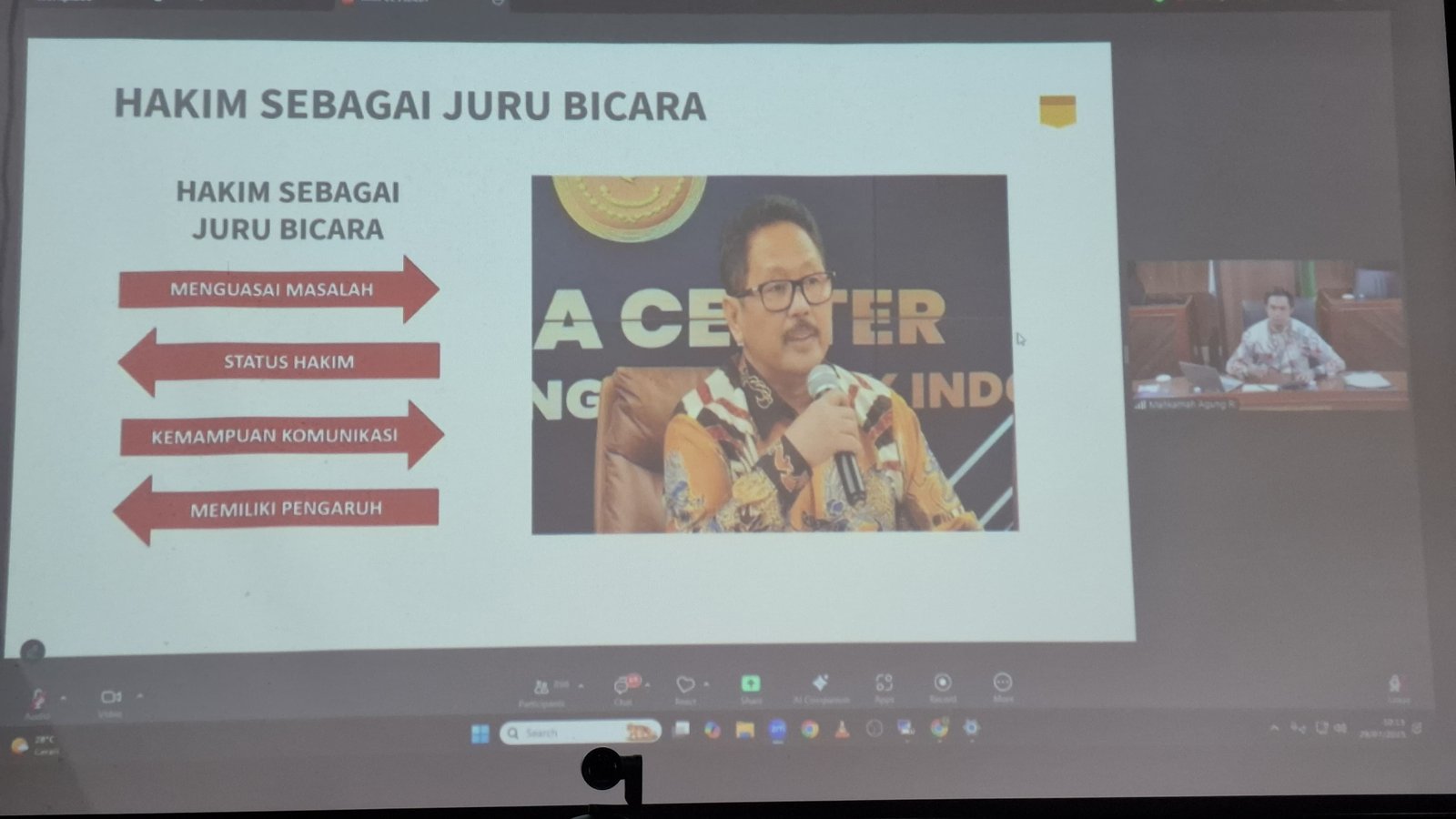 Kegiatan pelatihan ini bertujuan untuk membekali para aparatur peradilan, khususnya yang bertugas sebagai juru bicara dan pengelola media sosial, dengan kemampuan menyampaikan informasi secara efektif, akurat, dan profesional. Selain itu, peserta juga dilatih dalam mengelola media sosial secara strategis sebagai sarana transparansi dan pelayanan informasi kepada masyarakat. Pelatihan mencakup beberapa materi penting, antara lain teknik berbicara di depan publik dan media massa, strategi komunikasi krisis, penyusunan siaran pers yang baik dan benar, etika komunikasi publik dalam peradilan, pengelolaan akun media sosial yang responsif dan informatif, pencegahan dan penanganan disinformasi di media sosial.
